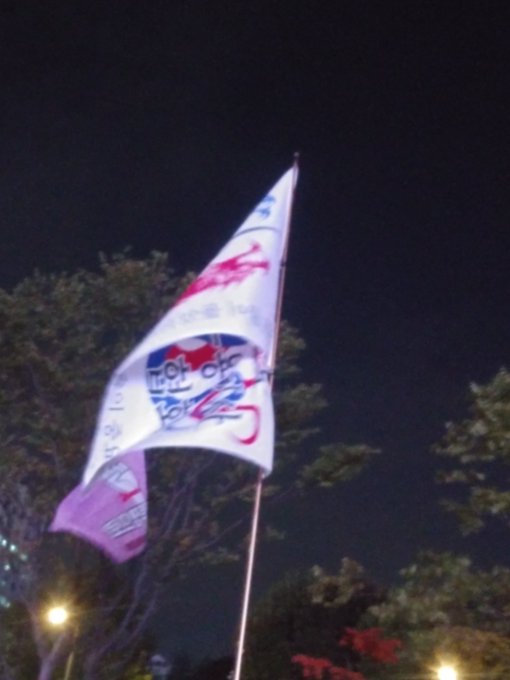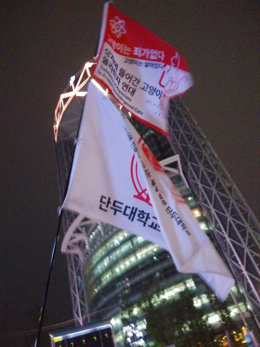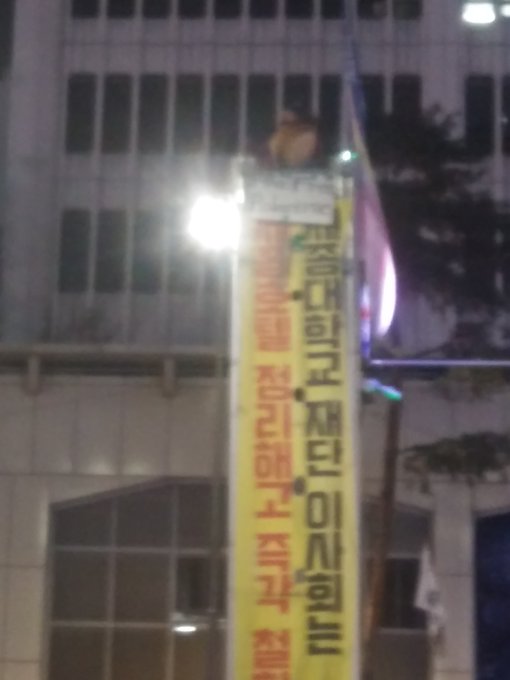 유세 끝난 다음에야 겨우 제대로 찍은 단두대학교 교수회 깃발