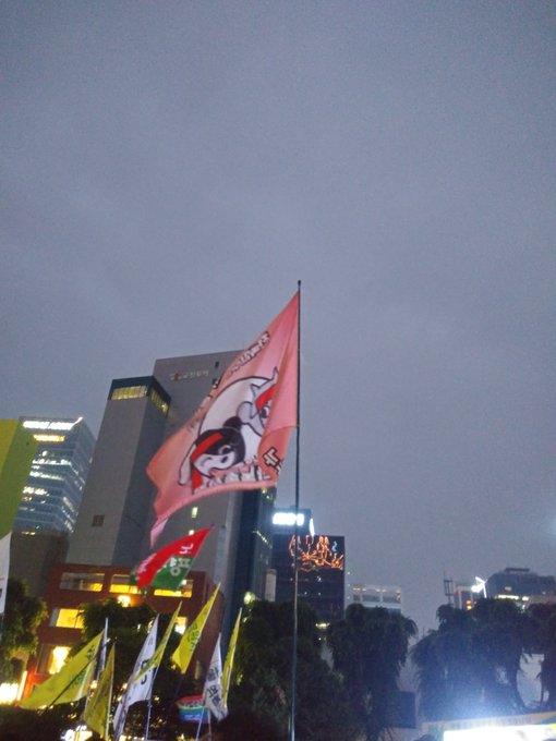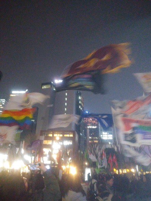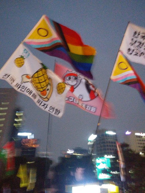 저 프라이드 플래그+금속노조 깃발 조합은 꽤 마음에 든다.