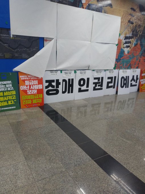 국회 앞으로 가던 중 여의도 역에서 발견한 벽보. 전장연 시위도 언제 한 번 가야 할텐데.