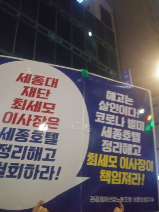 마무리로 다만세 불렀다. 세종대학교 재단 이사회는 세종호텔 정리해고 즉각 철회하라 투쟁.