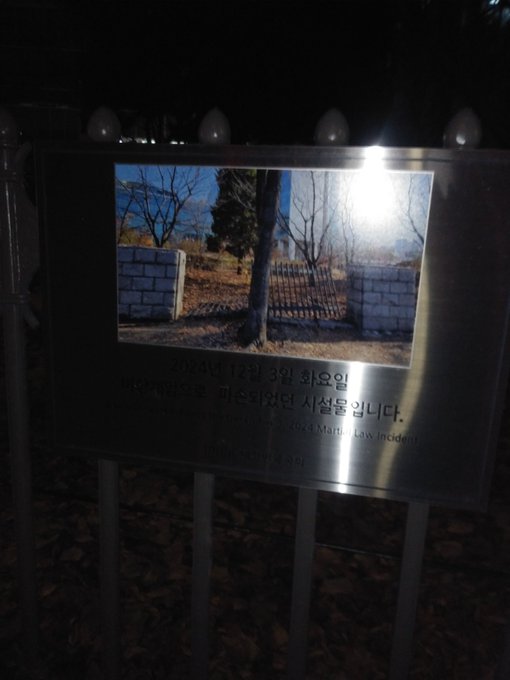 가다가 길을 잃어서 반대 방향으로 가 버리는 바람에 30분 넘게 허비했다. 작년 계엄의 밤 당시 의원들이 월담하느라 파손됐던(현재는 보수됐다) 곳을 발견해서 찍은 사진.